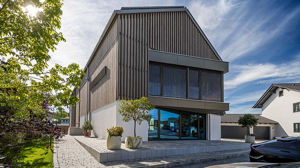 Mit dem Neubau ihres eigenen Bürogebäudes im Ortskern von Ascha haben die Architekten ein prägnantes Beispiel für nachhaltige Nachverdichtung und modernen Holzbau realisiert. Das zweigeschossige Gebäude der Gebäudeklasse 3 verbindet klassische Bauformen mit innovativen Konstruktionsprinzipien und zeigt, wie architektonische Qualität, funktionale Organisation und ökologische Verantwortung zu einem stimmigen Gesamtkonzept verschmelzen. Es dient nicht nur als Arbeitsplatz, sondern auch als gebaute Visitenkarte des Büros, die Materialvielfalt, präzise Ausführung und gestalterische Detailliebe sichtbar macht.