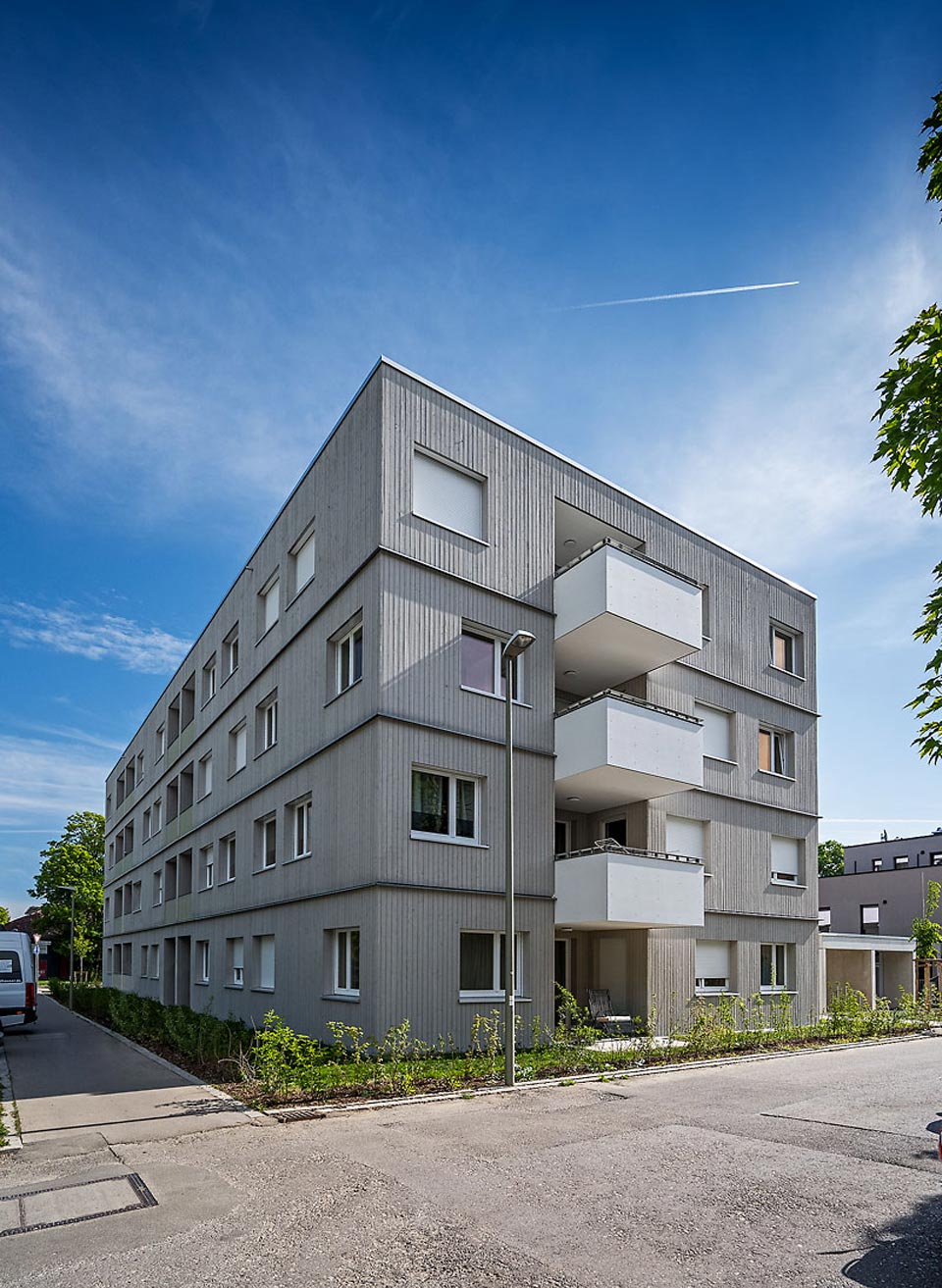Mit dem Wohnbauprojekt in der Alfred-Nobel-Straße in Augsburg wurde ein zukunftsfähiges Gebäude realisiert, das soziales Wohnen, architektonische Qualität und nachhaltige Holzbauweise überzeugend zusammenführt.